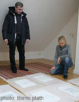 künstler aus hamburg, betrachteten meine drucke unterm dach des lotsenhauses.