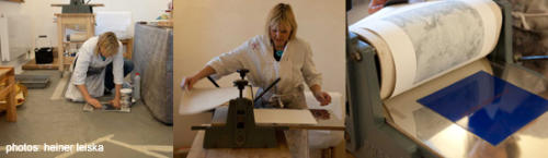 vor und an meiner kleinen mobilen druckpresse begleitet mich heute heiner leiska. er fängt mit seiner kamera