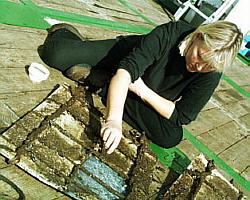 gerissenen zinkplatten, zu bergen. an deck bei einer tasse kaffee kann jetzt nach einem halben jahr unter wasser der künftige druckstock flüchtig betrachtet werden.